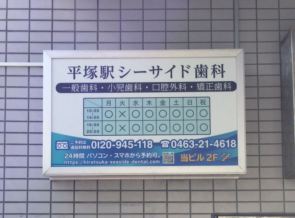 平塚駅前 平日・土・日・祝日(夜8時まで診療) TEL : 0120-945-118(ご予約専用通話料無料)又は0463-21-4618